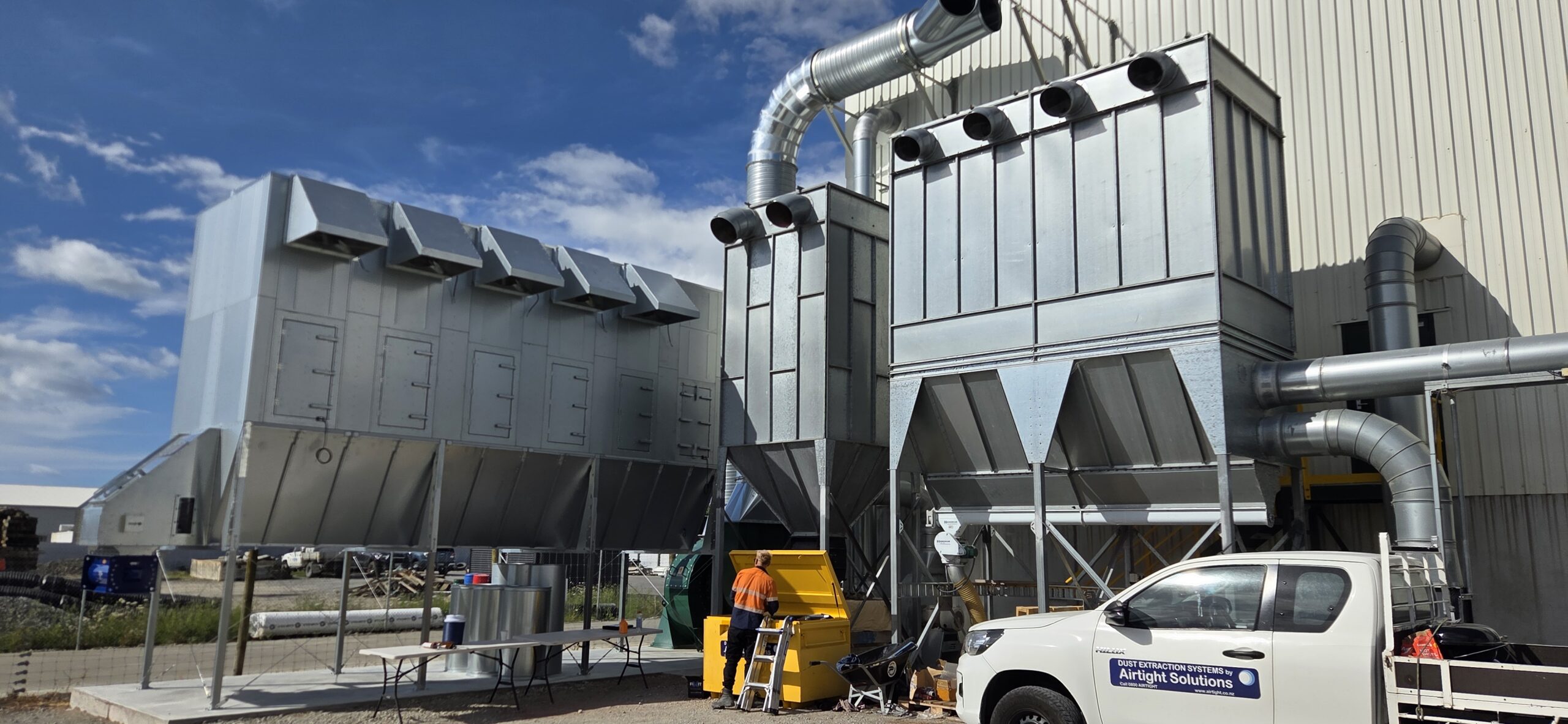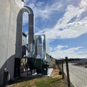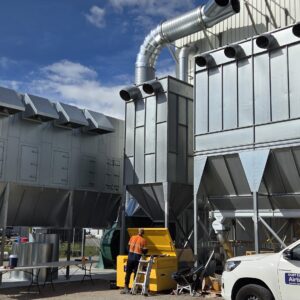 Following a site review in April 2025, Vortex outlined a plan to install two large extraction hoods over the gravity tables and connect them to a high-capacity reverse air baghouse. This design uses a gentle cleaning action, so it doesn’t require compressed air, minimises energy use, and extends filter life.