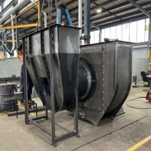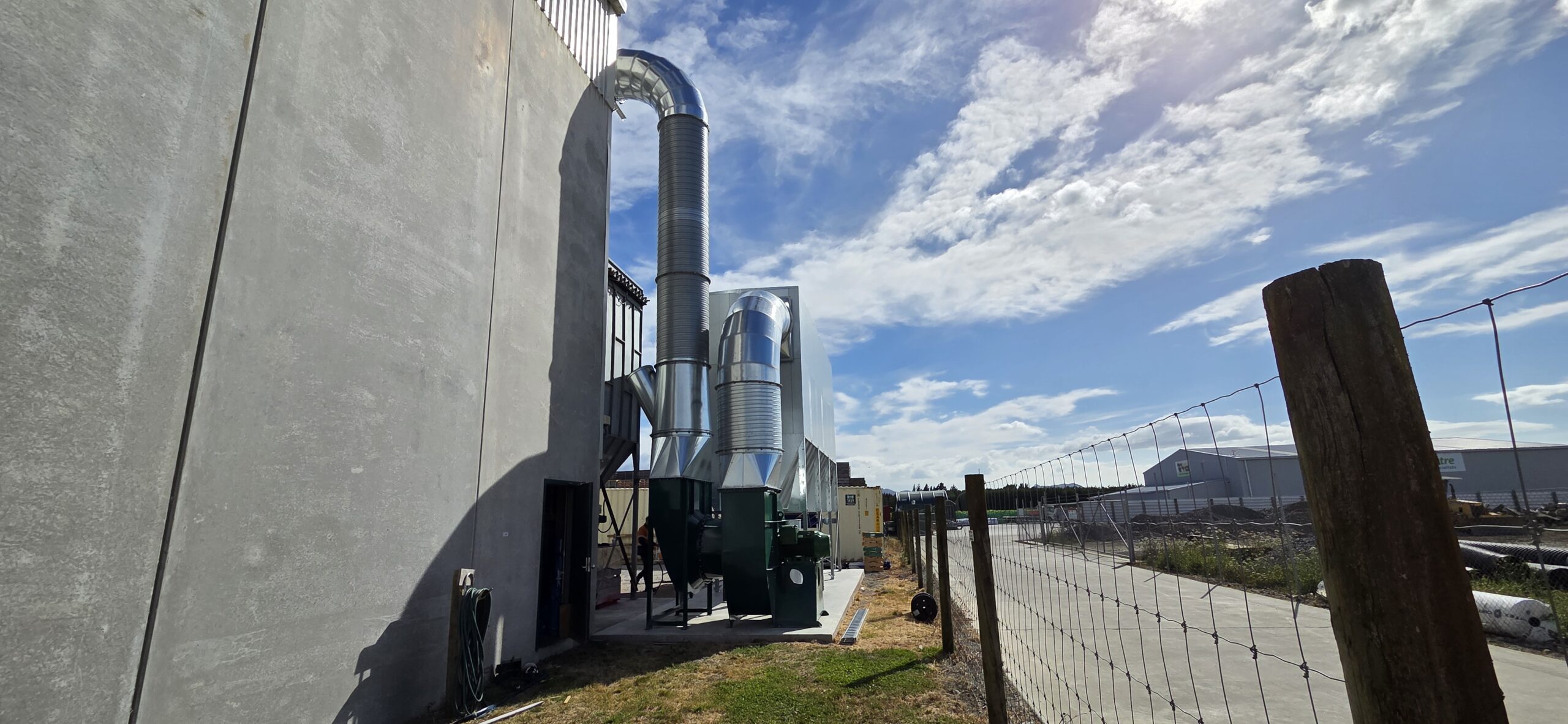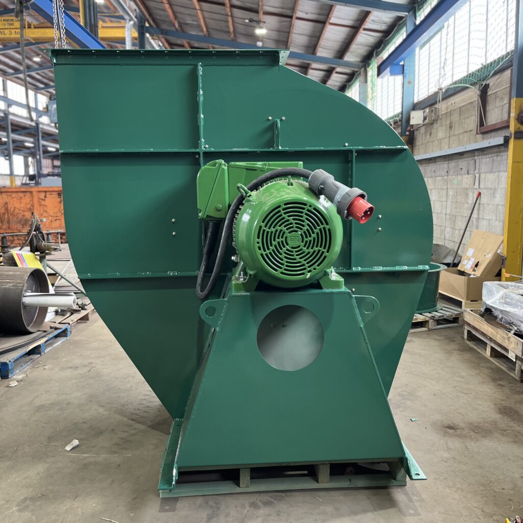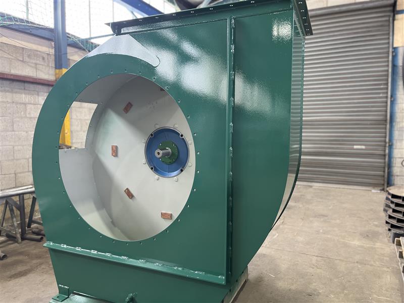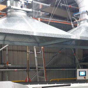 - Baghouse and fan: Provide and install an RAF5+1 reverse air filter (about 54 000 m³/h capacity) together with a 75 kW FA1120 extraction fan fitted with an ABB variable speed drive.