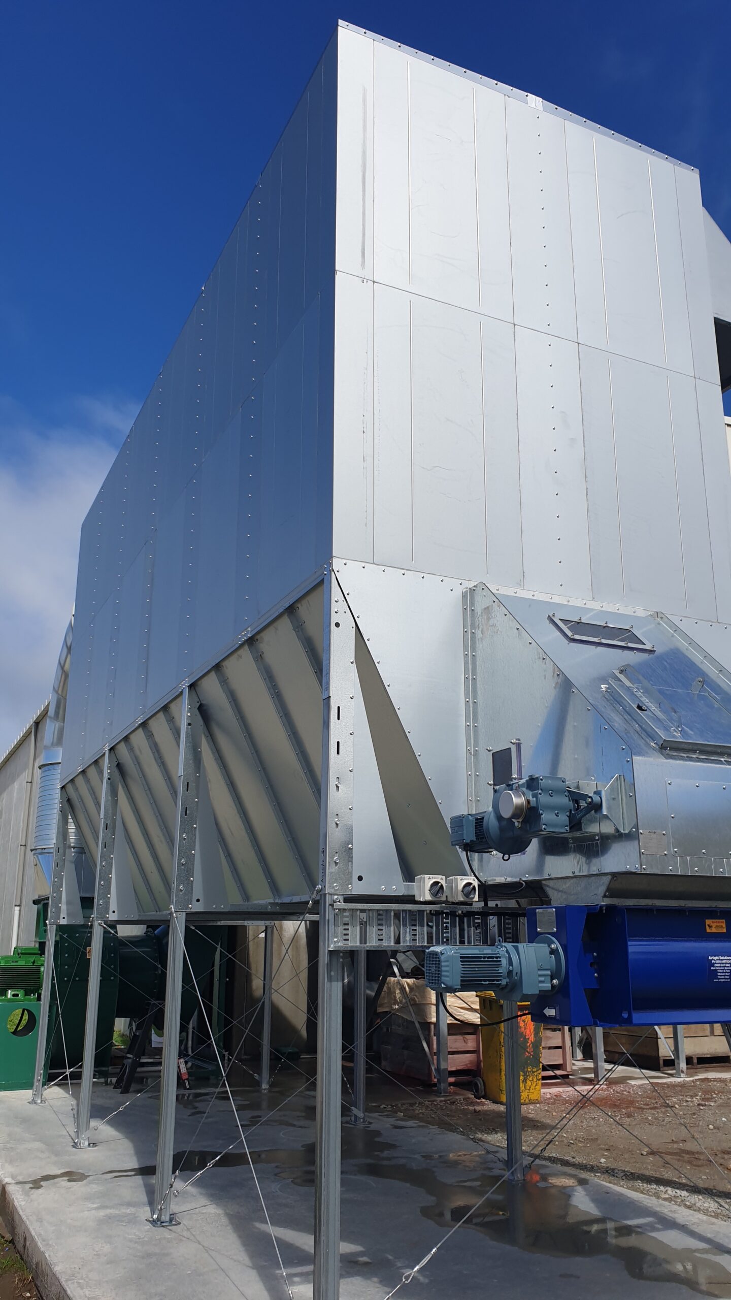 - Discharge system: Fit a rotary valve, discharge bin cover and conveyors to move collected dust into PGG Wrightson’s bins.