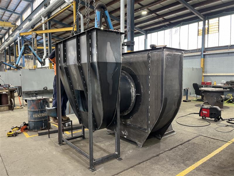 - Hoods and ducting: Fabricate two extraction hoods above the gravity tables and connect them via 1 000 mm ductwork to the fan and from the fan to the baghouse, including all supports and fittings.