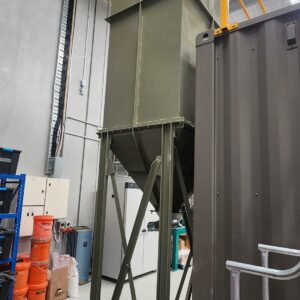 - PE 16 x 2050 Filter Baghouse: A 16-pleated element reverse pulse baghouse constructed from durable 3mm thick mild steel, ensuring robust performance and longevity. This welded-construction baghouse is equipped with pleated filter elements for enhanced filtration efficiency, capable of managing an extraction volume of 1.15m³/s.